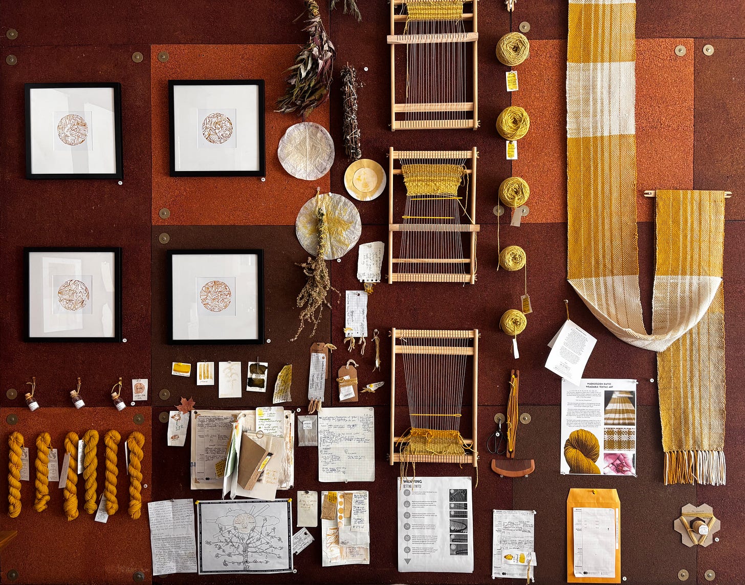 The current art show adorning our walls, Soliel by artist-in-residence Nicole Duprée, will soon come down to make room for a new seasonal installation. Nicole will debut a spring version of Sessions with the Muse—a wild-foraged, naturally dyed, homespun, textural, and deeply inspiring collection.